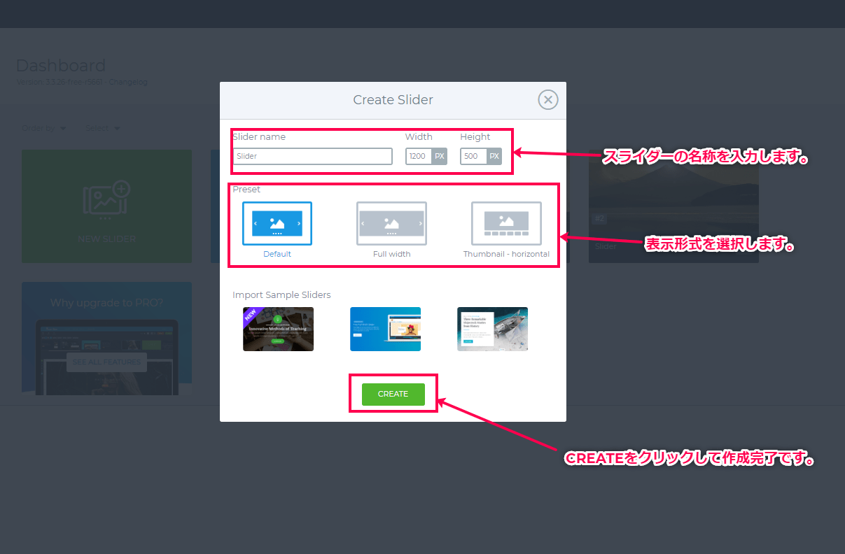 NEW SLIDERをクリックして、作成画面になります。