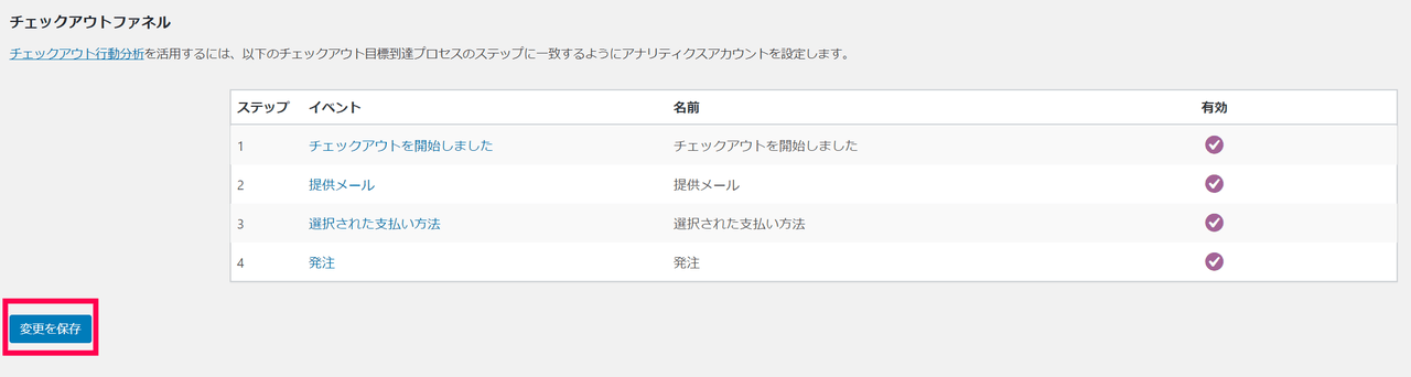 基本的には、ファネルもデフォルトのままで問題ありません。ただし、”ファネルを追加したい””名前を変更したい”という場合は、Googleアナリティクス側での設定が必要になります。設定は、Googleアナリティクスの [設定] > [Eコマース設定] から行うことが可能です。